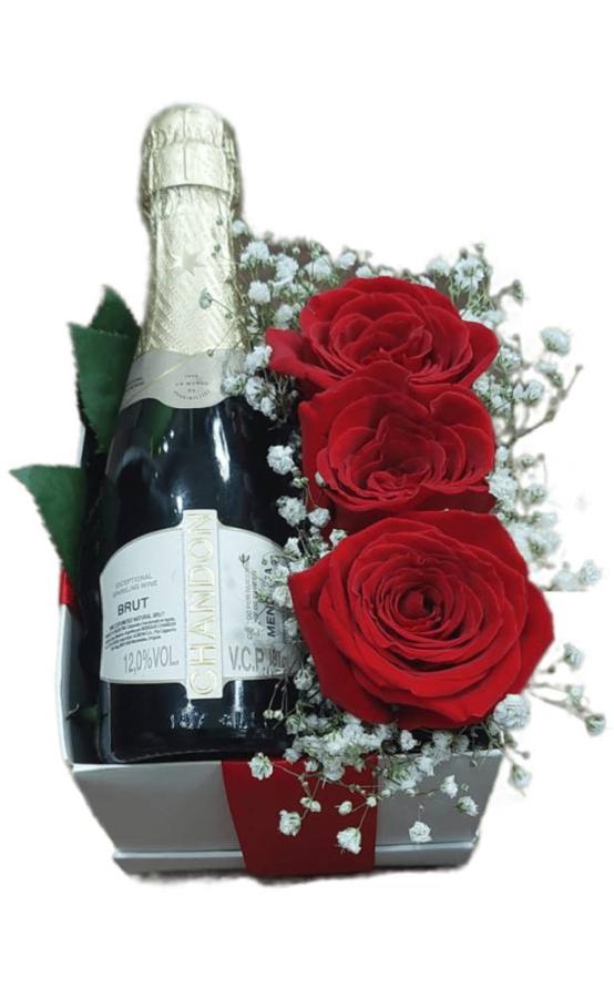 Un toque de elegancia y distinción. 3 rosas y una botella de champán ideal para cualquier día. Un regalo perfecto con el que acertarás.
