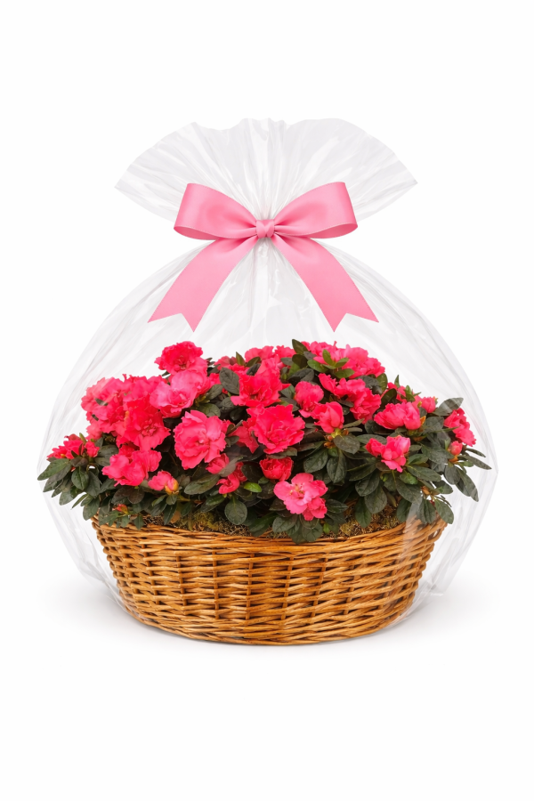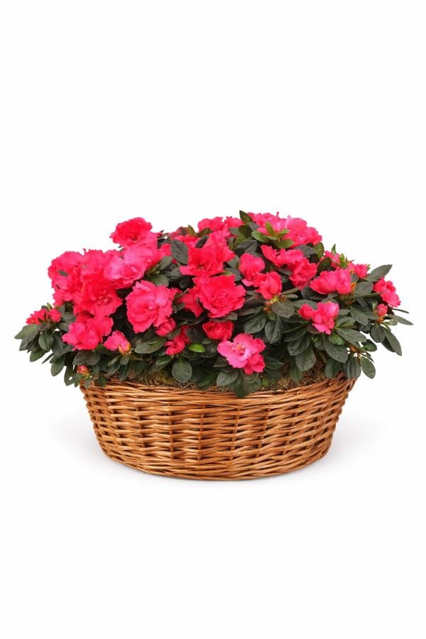 Cuidados de las azaleas en cesta Luz — Prefieren luz natural suave; evitar el sol directo fuerte para que las flores duren más. Riego — Mantener el sustrato húmedo, sin encharcar. Las azaleas agradecen riegos frecuentes y moderados. Temperatura — Ideal entre 12 y 20 °C; evitar ambientes muy cálidos o secos. Humedad — Les gusta la humedad ambiental; se puede colocar un plato con piedras húmedas debajo (sin que toque la base de la cesta). Mantenimiento — Retirar flores marchitas para favorecer nuevas floraciones y revisar que la cesta no acumule exceso de agua.