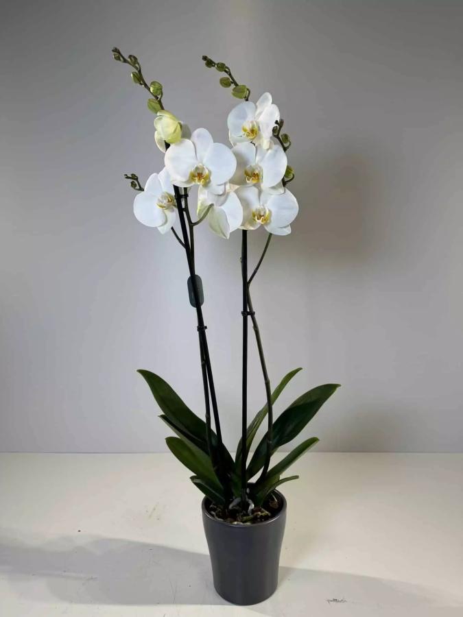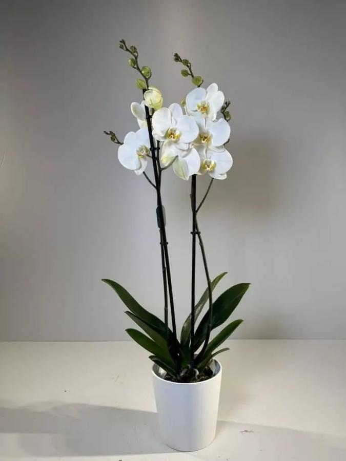 Orquídea Blanca: Elegancia Natural para Cada Momento La orquídea blanca es mucho más que una planta: es un símbolo de pureza, equilibrio y belleza atemporal. Su presencia transforma cualquier espacio en un ambiente sereno y sofisticado, convirtiéndola en el regalo perfecto o en el detalle ideal para decorar. Puede ser de una o 2 varas dependiendo de la epoca