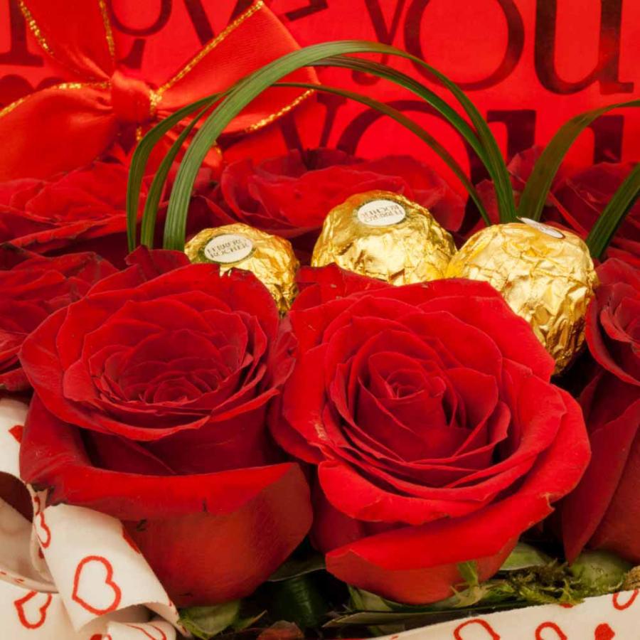 Rosas acompañadas con bombones Ideal para: Detalles románticos. Cumpleaños y aniversarios. Sorpresas para amigas y celebraciones íntimas.